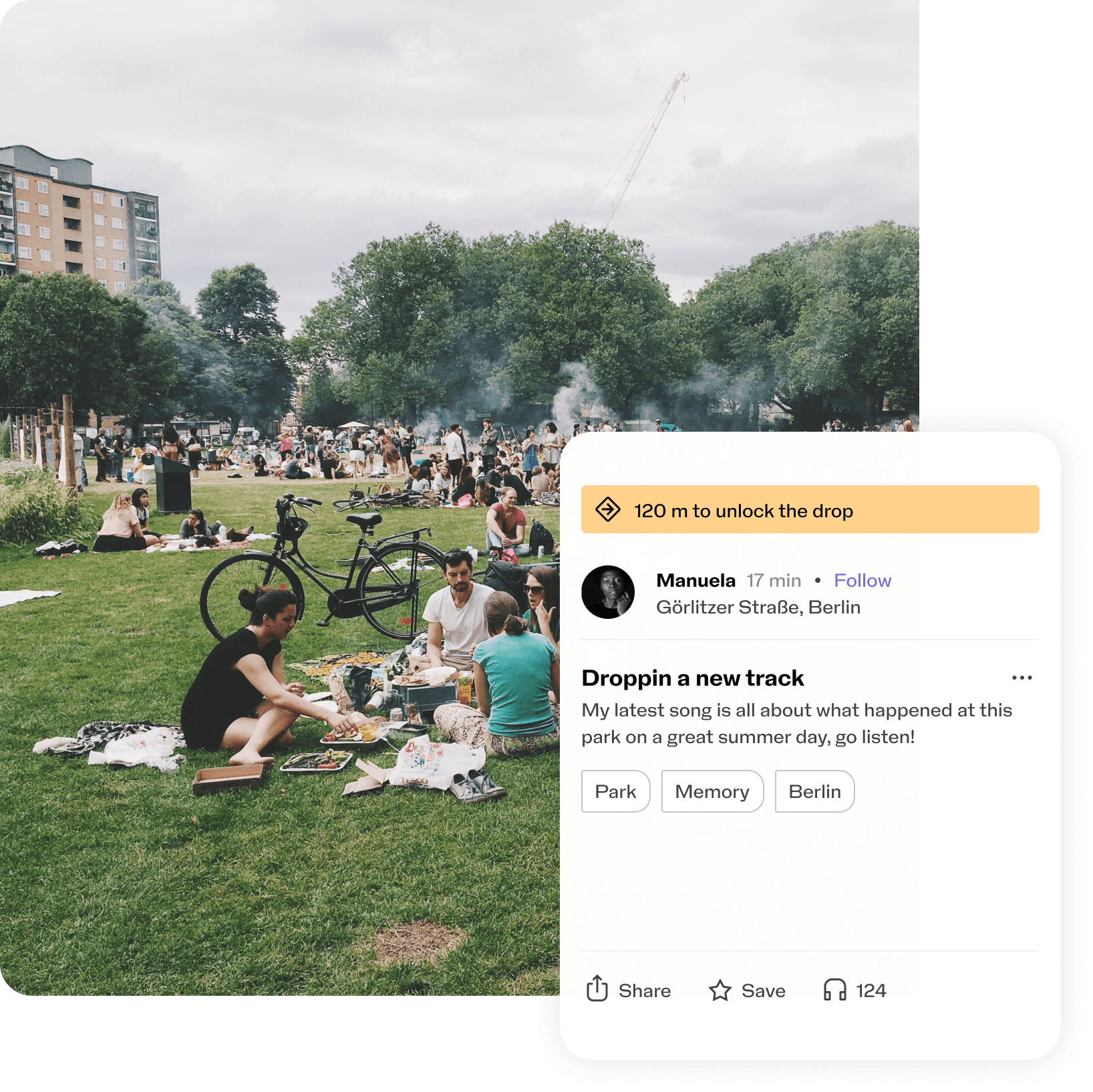 Share a memory with your friends by creating them a private drop. Let them hear your voice in a place you’ve maybe experienced together.